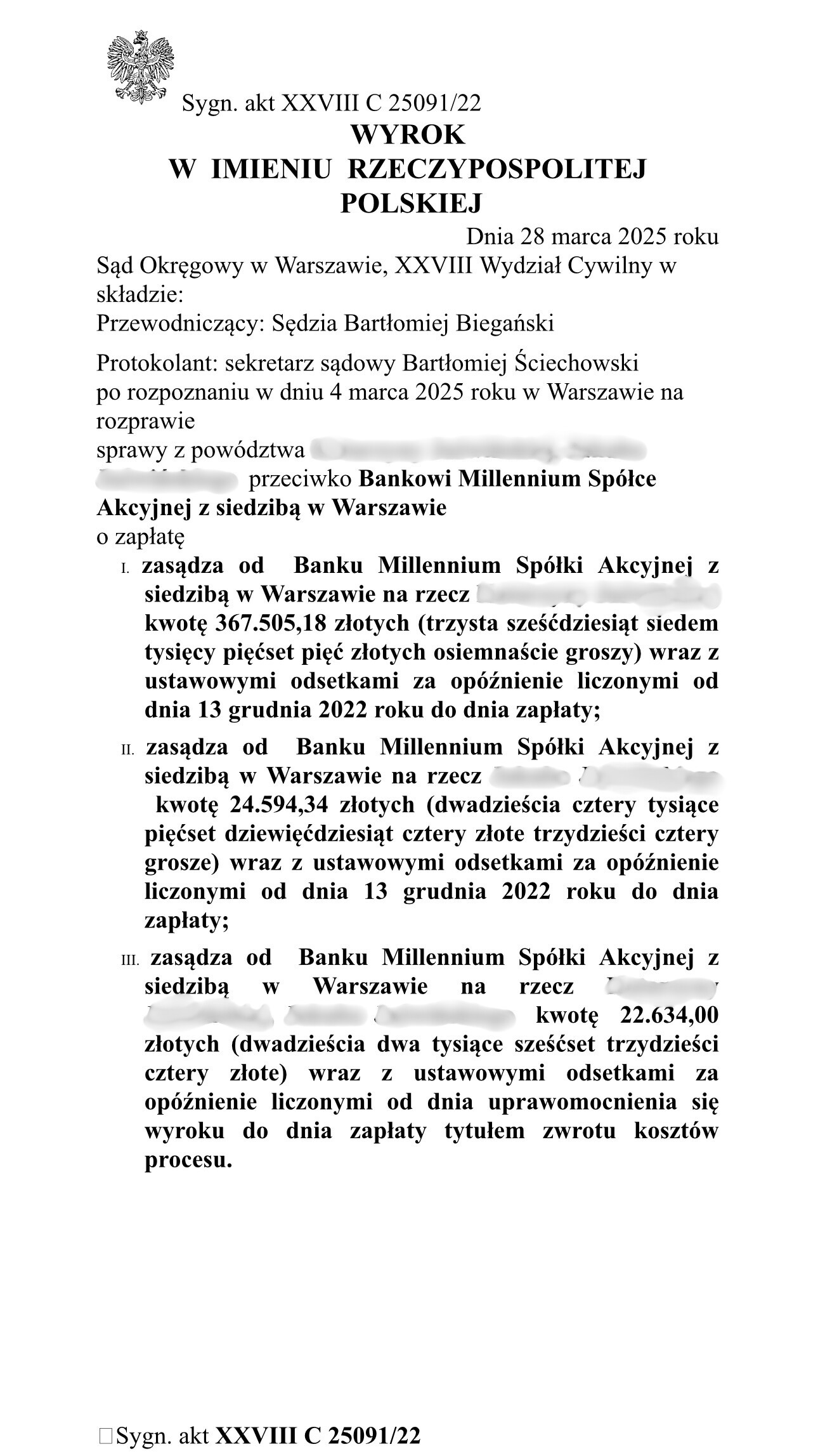 Millennium S.A. zasądził od pozwanego banku na rzecz Klientów Kancelarii